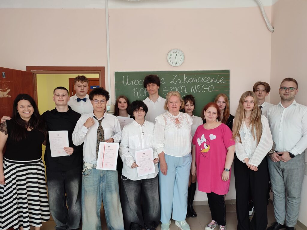 Z radością informujemy, że wszyscy uczniowie otrzymali promocję do klasy wyższej, a ci, którzy uzyskali świadectwo z wyróżnieniem, zostali uhonorowani i docenieni na forum szkoły. ![]()